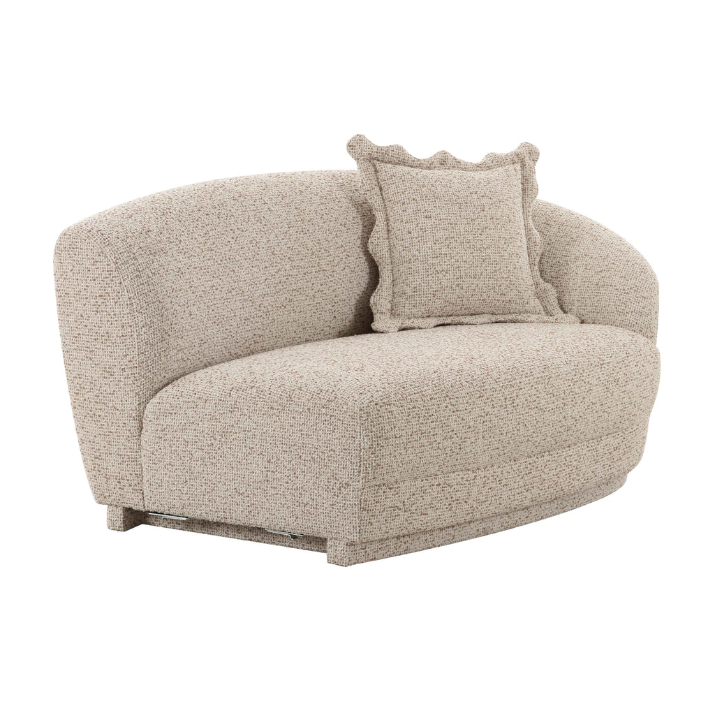 Introducing the Marion Two-Tone Textured Boucle Sectional, designed to shine from every angle; perfect for open living rooms where every side counts, even the back. Its playful, angled silhouette comes in two or three pieces, bringing both comfort and charm to your space. With graceful arched details and whimsical pillows, Marion is the must-have statement piece of the season.