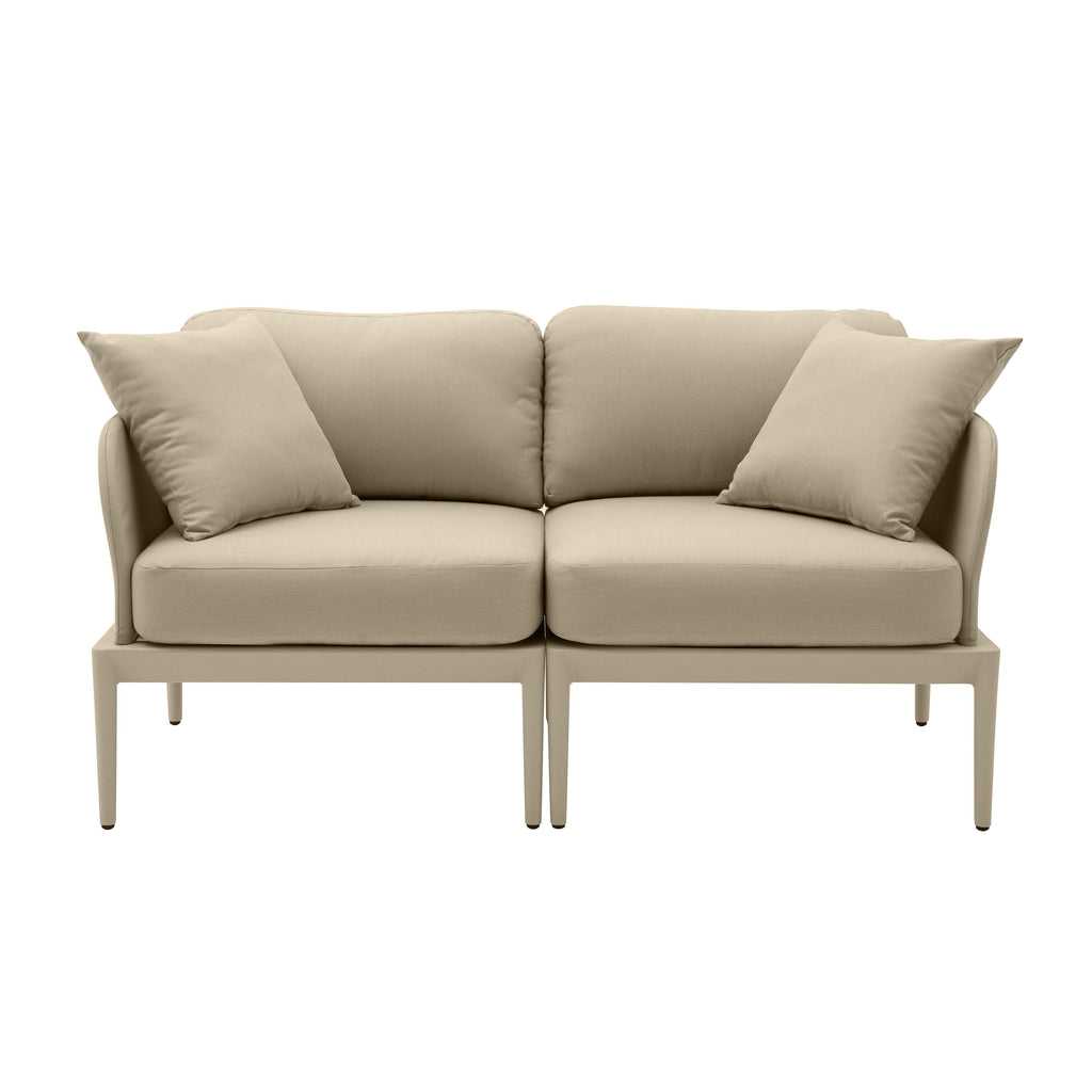 Lounge in luxury with the Kapri Outdoor Modular Collection, a dynamic design that offers endless configurations to suit any space.... Lounge in luxury with the Kapri Outdoor Modular Collection, a dynamic design that offers endless configurations to suit any space. Crafted from rust-resistant aluminum, this collection ensures longevity and durability. With outdoor-grade fabric and metal finishing, a unique slipcover design for armrests and backrests, and a stylish monochromatic aesthetic with texture contrasts, Kapri brings both comfort and contemporary style to your outdoor retreat. Its compact and modular design is perfect for balconies or other cozy spaces, maximizing every inch of your outdoor areaAll cushions have removable coversModular design for endless configurationsAluminum, not iron, to prevent rust and increase longevity.Outdoor grade fabric and metal finishing.Dimensions: 55.0"W x 29.8"D x 30.6"H View more