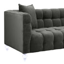 Our Bea sofa is a true a beauty. This rich velvet upholstered sofa is designed with a deep seat, luxe tufting and Lucite legs. Bea adds style and color to any room.