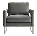 Inspired by our love for luxe, modern design the Avery chair radiates sophistication and grandeur. With a glossy silver finish and gorgeous curves, this chair is available in several sumptuous upholstery options. The Avery is a must-have for any room.