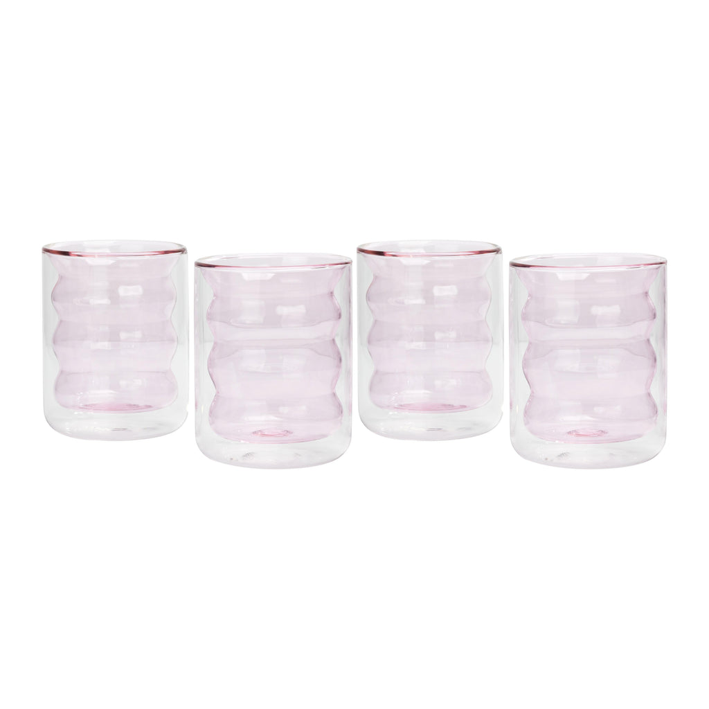 Infuse your table setting with whimsy using the vibrant Waves Drinking Glasses, adorned with playful Memphis squiggles that spark joy... Infuse your table setting with whimsy using the vibrant Waves Drinking Glasses, adorned with playful Memphis squiggles that spark joy with every sip. Available in multiple color options, these glasses offer an opportunity to mix and match for a personalized and eclectic look. They're dishwasher-safe to ensure easy cleanup, making them a functional and stylish addition to your tablescape.Includes 4 matching glassesDishwasher safeAvailable in multiple finishesMix and match colors for a personalized collectionDimensions: 2.9"W x 2.9"D x 3.7"H View more