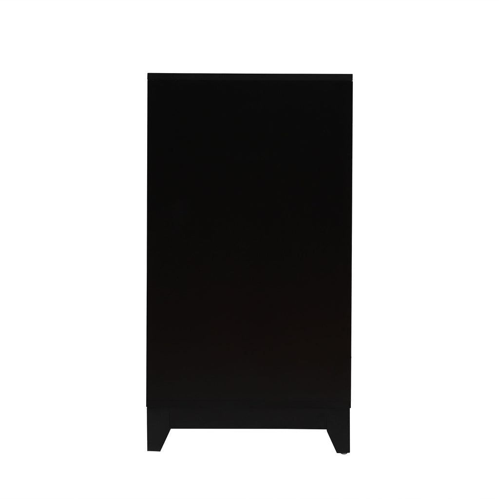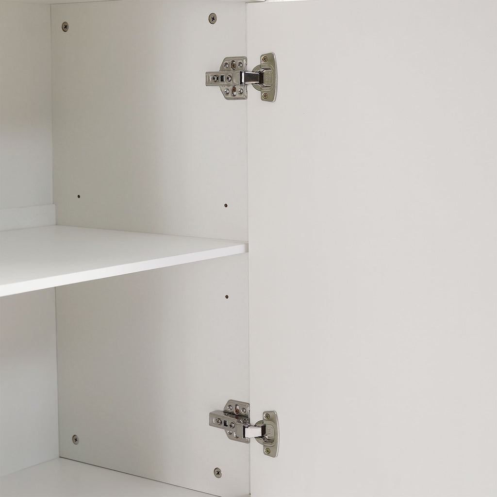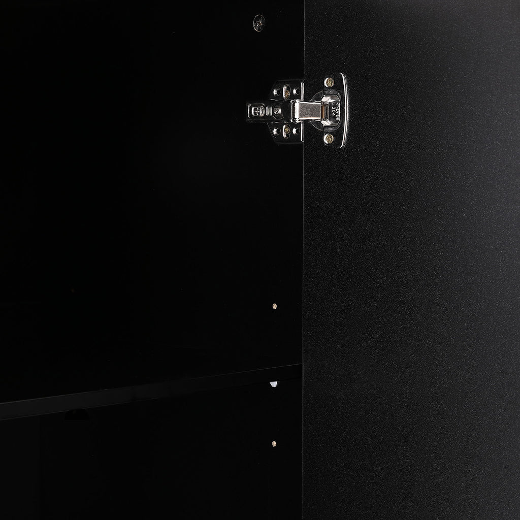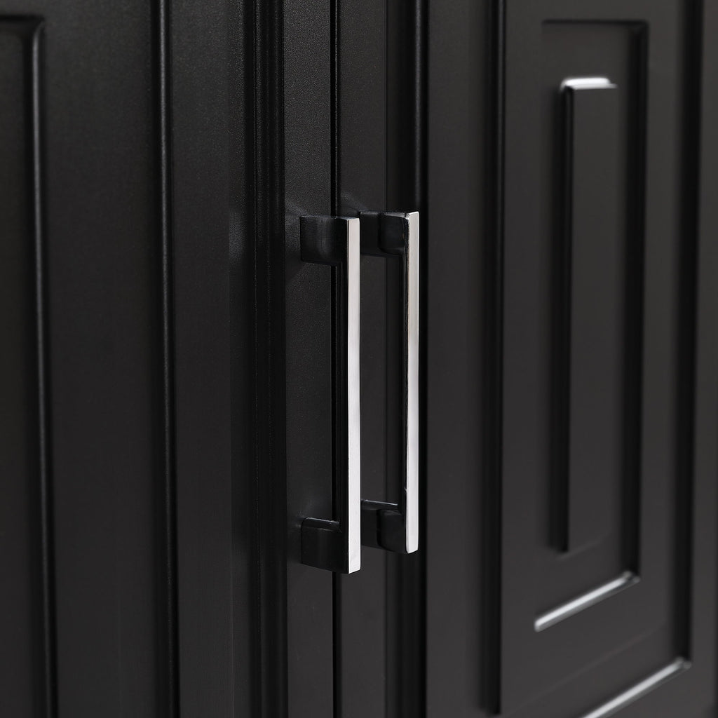 - Stylish and Sturdy: The cabinet boasts geometric doors with sleek metal handles for a functional and stylish touch. Supported by solid wood legs, it can hold a large TV and media equipment securely.