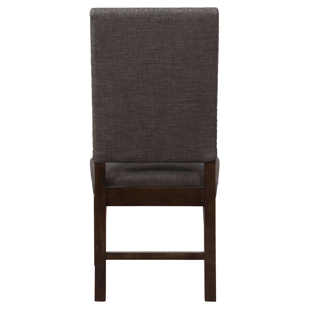 Chairs fashioned with solid hardwood, foam, and fabric with nailhead accents and wide seating for optimal comfort