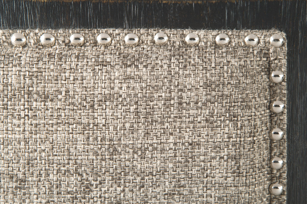 - Grayish brown polyester upholstery with nailhead trim