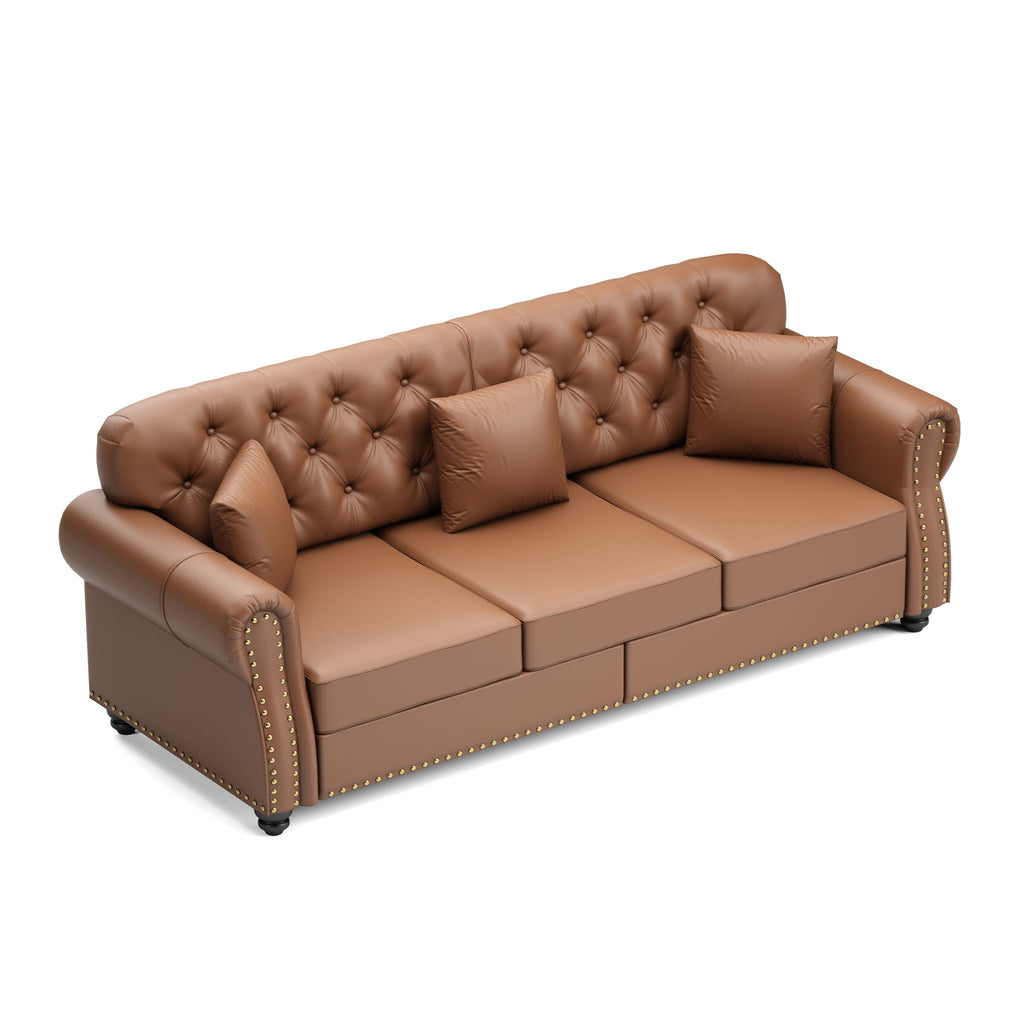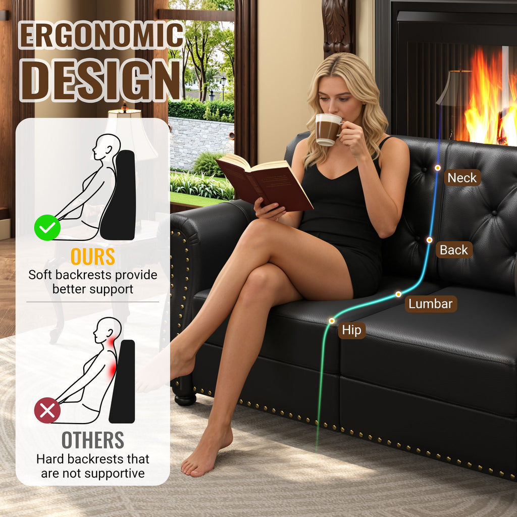 - TIMELESS DESIGN STYLE:This sofa is a dialogue across eras. It skillfully extracts the soul of the classic Chesterfield style. Each vintage detail is reimagined with contemporary proportions and attitude, creating a bridge between two golden eras of design