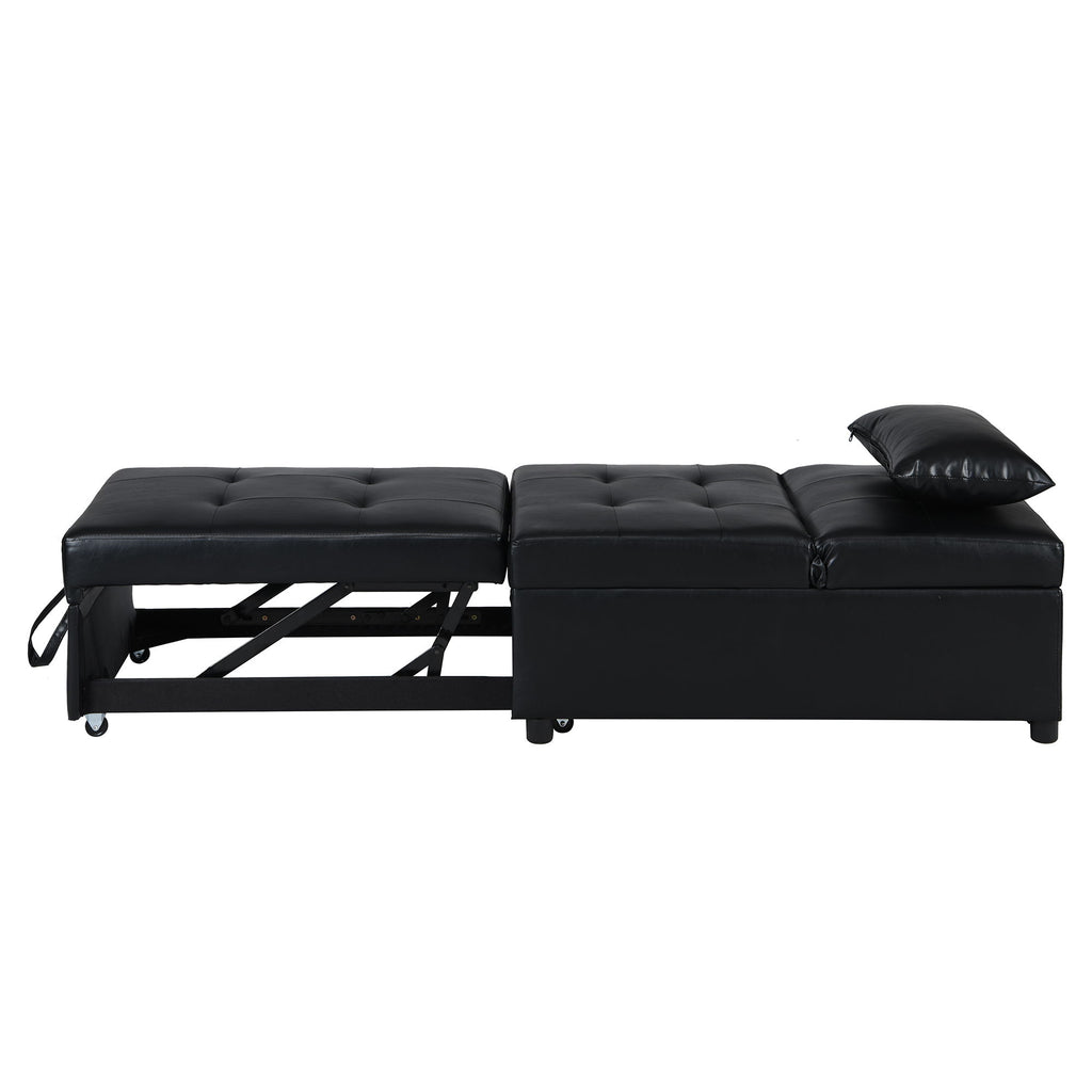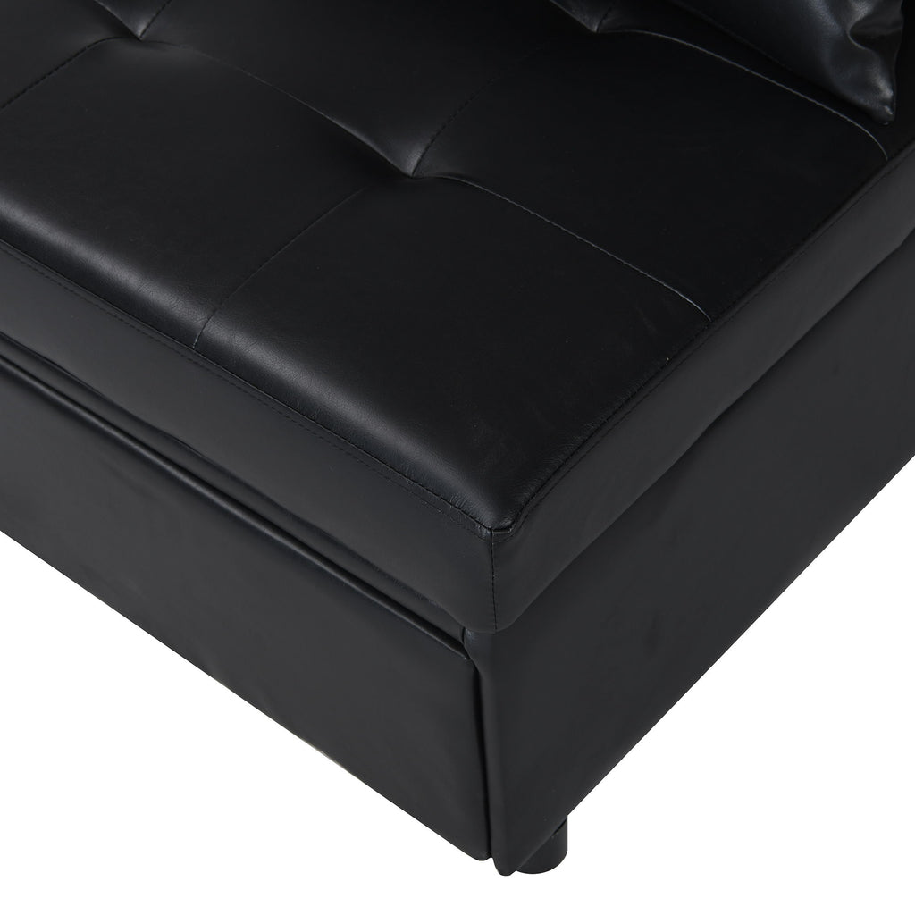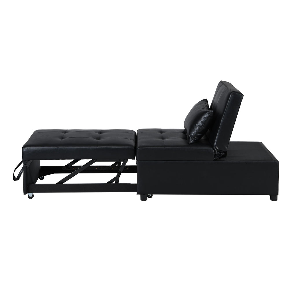 Folding Ottoman Sofa Bed Multi Functional Space Saving Design - Black
