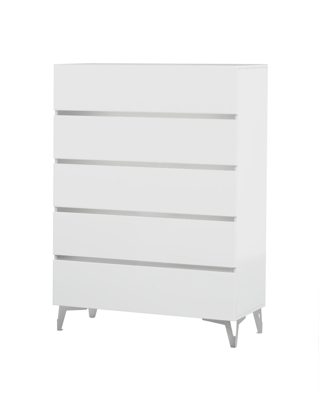 White Gloss Finish Polished Stainless Steel Legs & Accents Soft-Closing Drawers 5-Drawer Chest Made In Italy Some Assembly Required