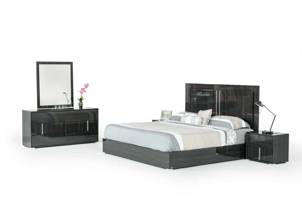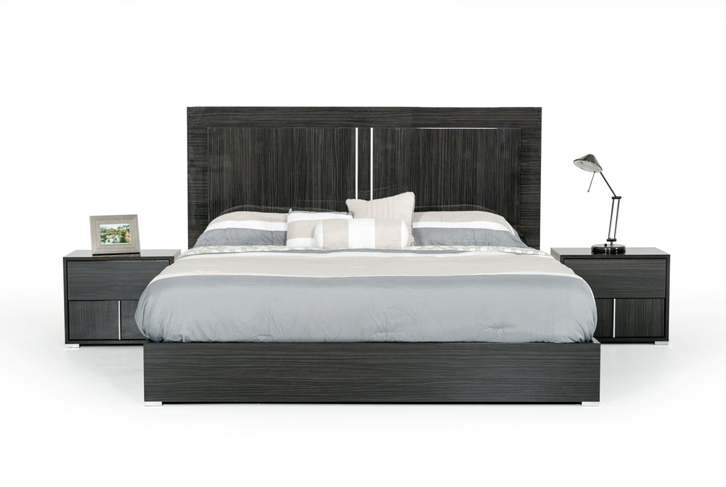 Keeping your items within easy reach while in bed is the Modrest Ari Italian Modern Grey Nightstand. Built with 2 soft-closing drawers, its grey surface features varying shades of wood lines in a high gloss finish. Giving it a more arresting look are the silver accents on the bottom drawer that blend beautifully with the silver cube legs.