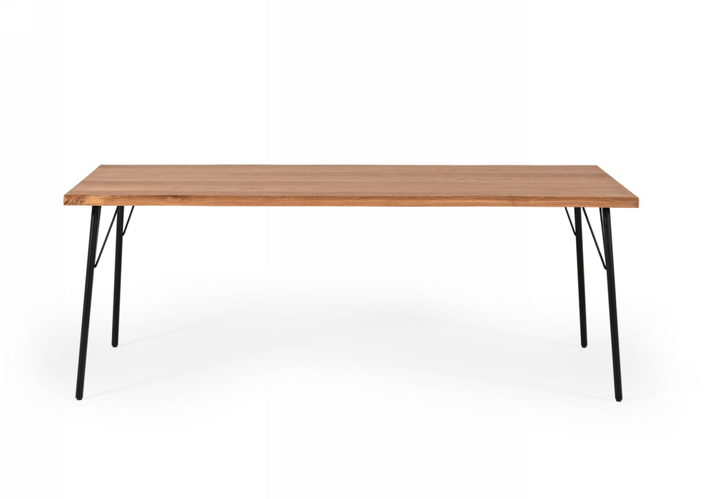 Rectangular Live Edge TopNatural Oak and Black Powder Coated Iron4-leg designrequires assemblySeat Capacity: 6