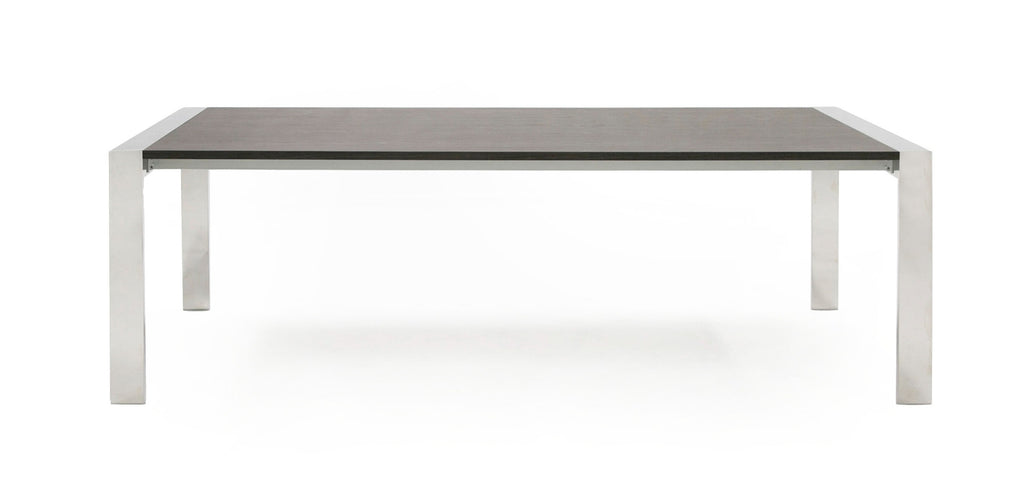 The Fauna Dining Table is the perfect simple style for a modern home. The elm grey veneer top juxtaposes the clean chrome lines of the legs and frame. Pair it with some colorful dining chairs to ensure that this set is highlighted and beautifully styled.