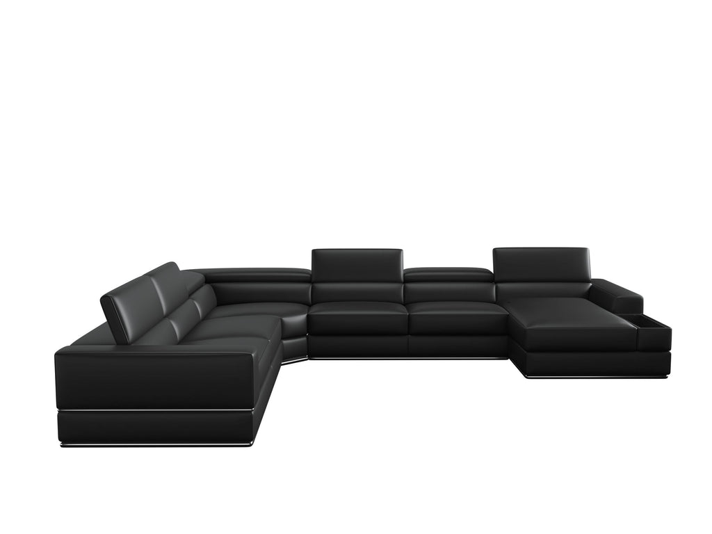 The Pella Sectional has a host of different design features to make it fit into your vision. Upholstered in high grade Italian leather, this piece offers adjustable headrests, push out recliners, and many seats to offer you as many options as possible. The square arms and clean lines of this sectional are perfect for a modern or contemporary home.