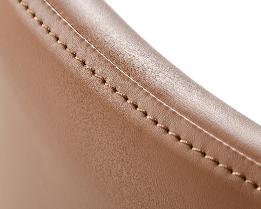 The Valier Dining chair arrives in a set of 2. The beautiful ash wood frame is finished a rich walnut hue, and the seat and back are upholstered in a brown leatherette. The chair has mid-century flavor and can work well with a table of similar style. The high back of the chair and sloped arm of the frame contribute to a very comfortable dining experience.