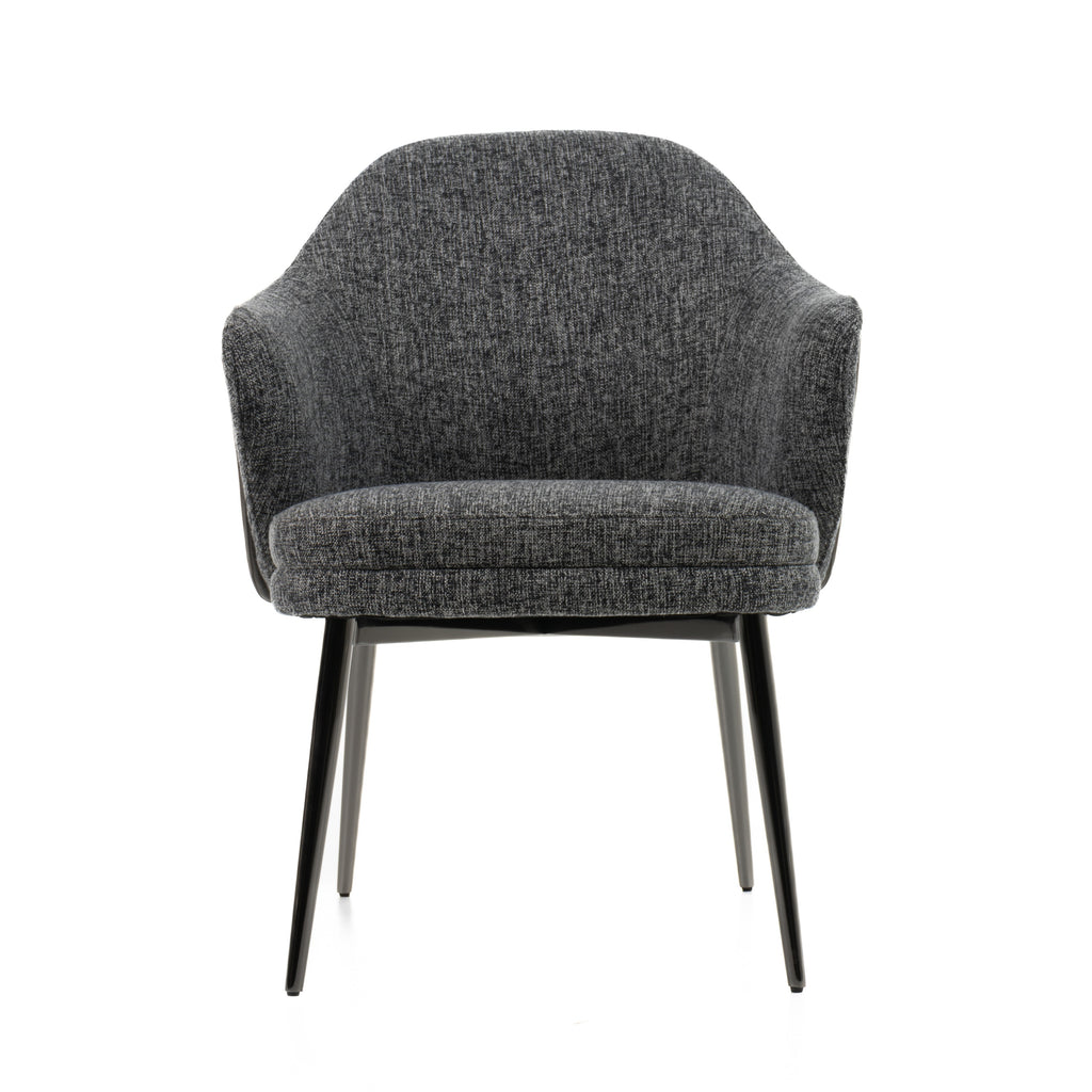 The Cora Dining Chair is an excellent example of contemporary design. The mix of the grey woven fabric against the grey vegan leather backing creates texture and contrast within the upholstery. Black stainless-steel legs complete the look and finish off this modern chair.