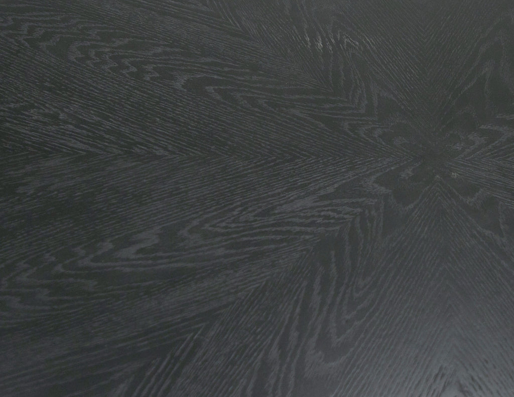 The Lander Modern Mid Black Oak Round Dining Table is a beautiful addition to any dining room. The deep black veneer wood top and tambour pedestal base provide a simple yet stylish look that creates an elegant atmosphere.