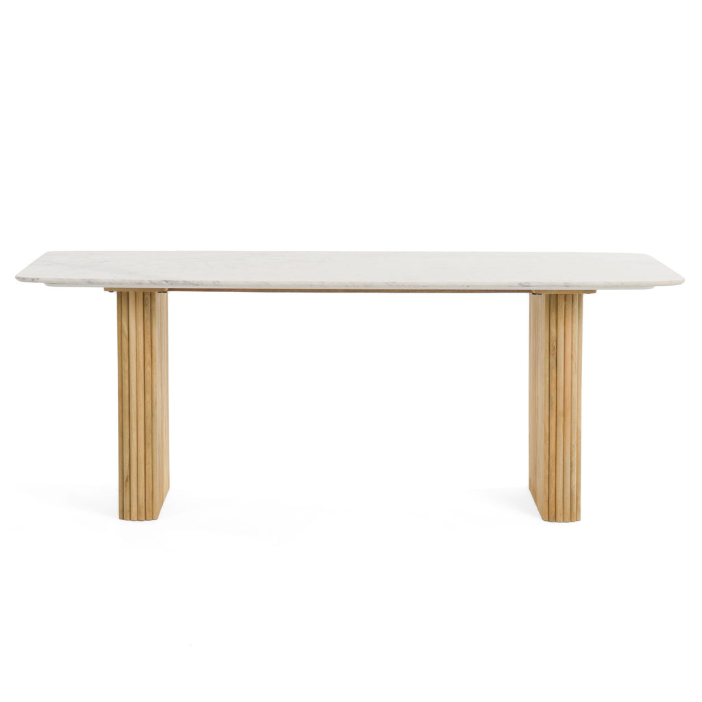 The Modrest Cambridge Rectangular Dining Table adds a clean and dynamic vibe to your dining room with its washed mango wood double pedestal base and visually appealing white marble top. This stunning table seats 6 comfortably and pairs with its matching buffets for a comprehensive dining area. Combine this dining table with other items from the same Cambridge collection.