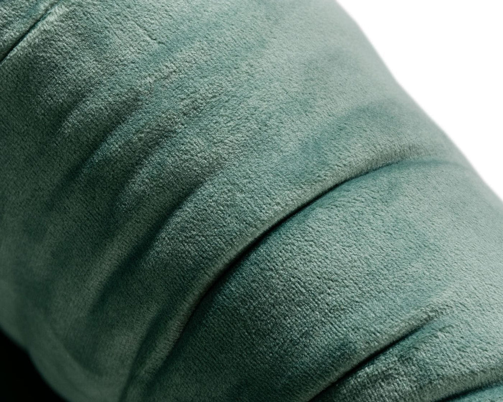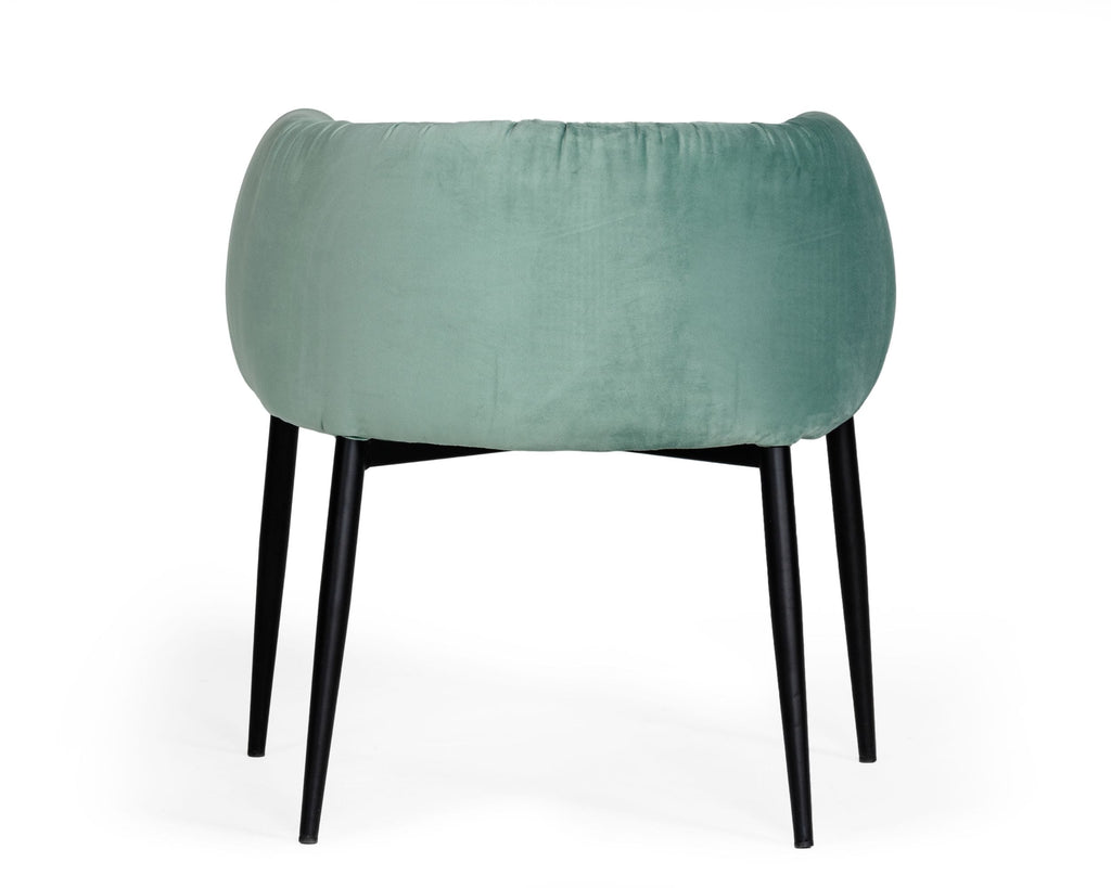 The Belcaro chair is a modern dining chair that uses a relaxed fit and bold metal base to create a juxtaposition of styles. The light green velvet is glam and soft while the black metal base is industrial and cold. Pairing these together creates a modern transitional style that appeals to all. The folded pillow style upholstery is engaging and comfortable.