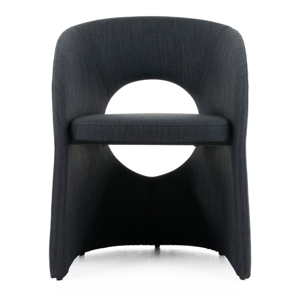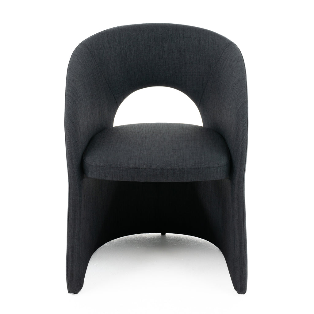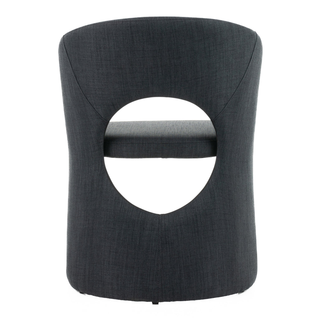 Attention to detail, the Brea Fabric Dining Chair has unique round cut in the back. Upholstered in Charcoal Dark Grey Fabric and will look perfect with the majority of our Modern Dining Tables.