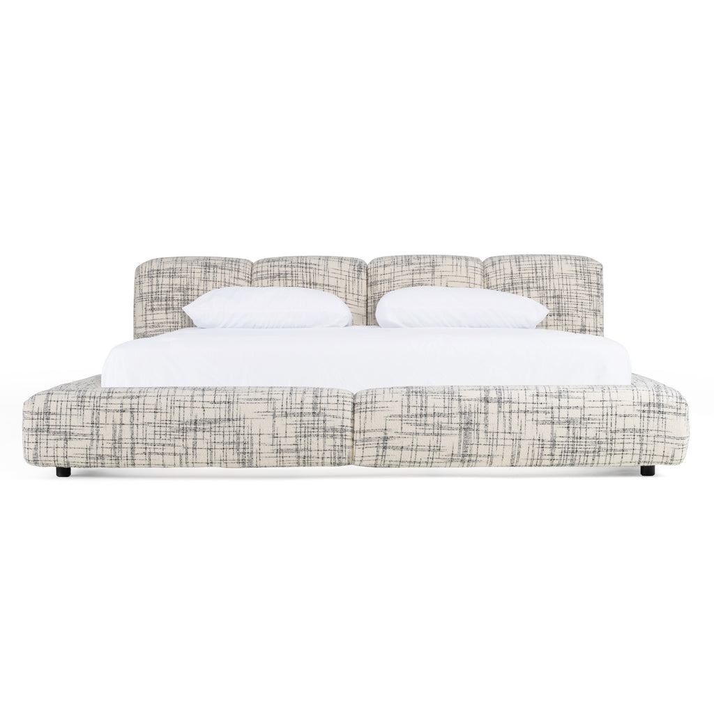 The Modrest Shiloh Modern Off-White + Black Fabric Bed exudes contemporary sophistication, blending artistic patterns with exceptional comfort. Fully upholstered in a striking off-white and black variegated fabric, this bed redefines modern elegance with its unique texture and impeccable design. The panel headboard creates a bold yet inviting focal point, while the sturdy craftsmanship ensures enduring luxury. Perfectly suited for those who value both style and substance, this bed transforms any bedroom into a serene retreat of understated opulence.