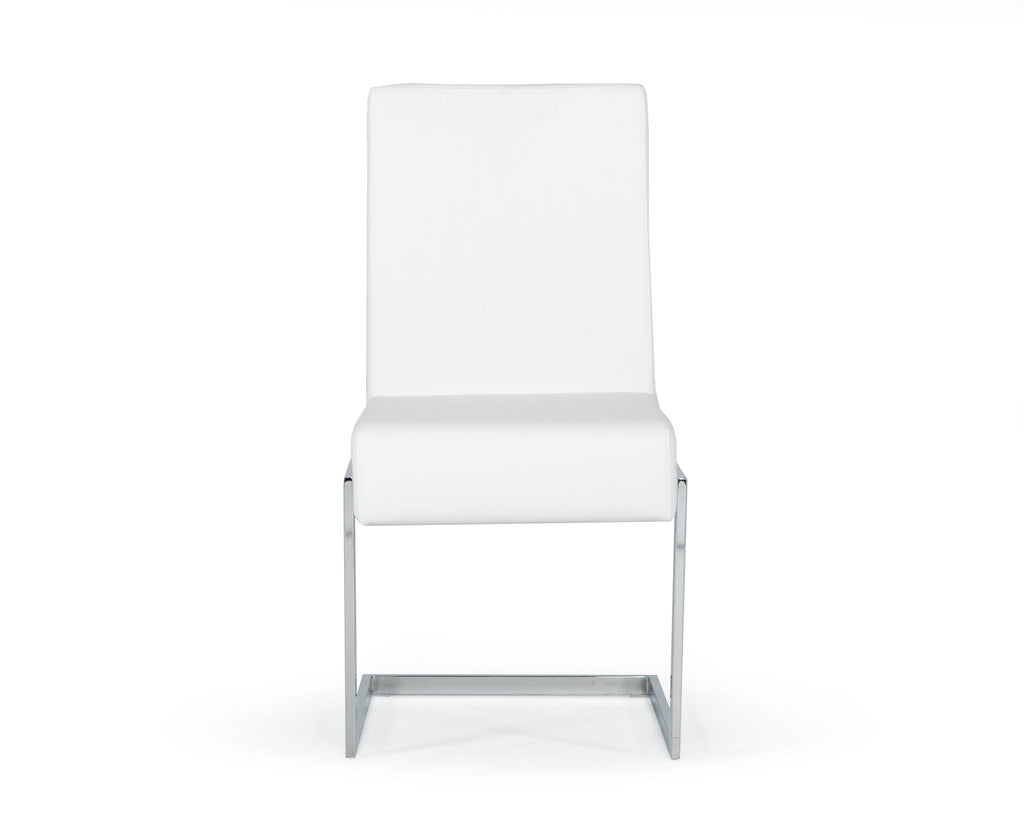 Upholstered in White Leatherette Stainless Steel Exposed Frame & Legs Set of 2 Chairs Some Assembly Required