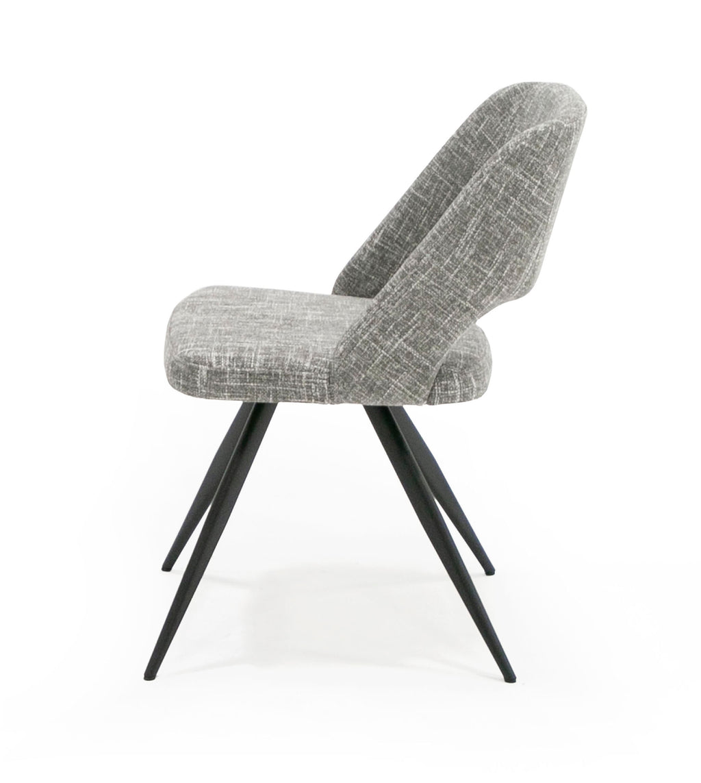 Whether you use it in the dining room or any area of your home, the Modrest Palmer Modern Grey Fabric Dining Chair will definitely give you a great sitting convenience. A small opening between the curved back and seat allows proper aeration when seated. With tapered durable black powder metal legs, this chair adds allure to any room.
