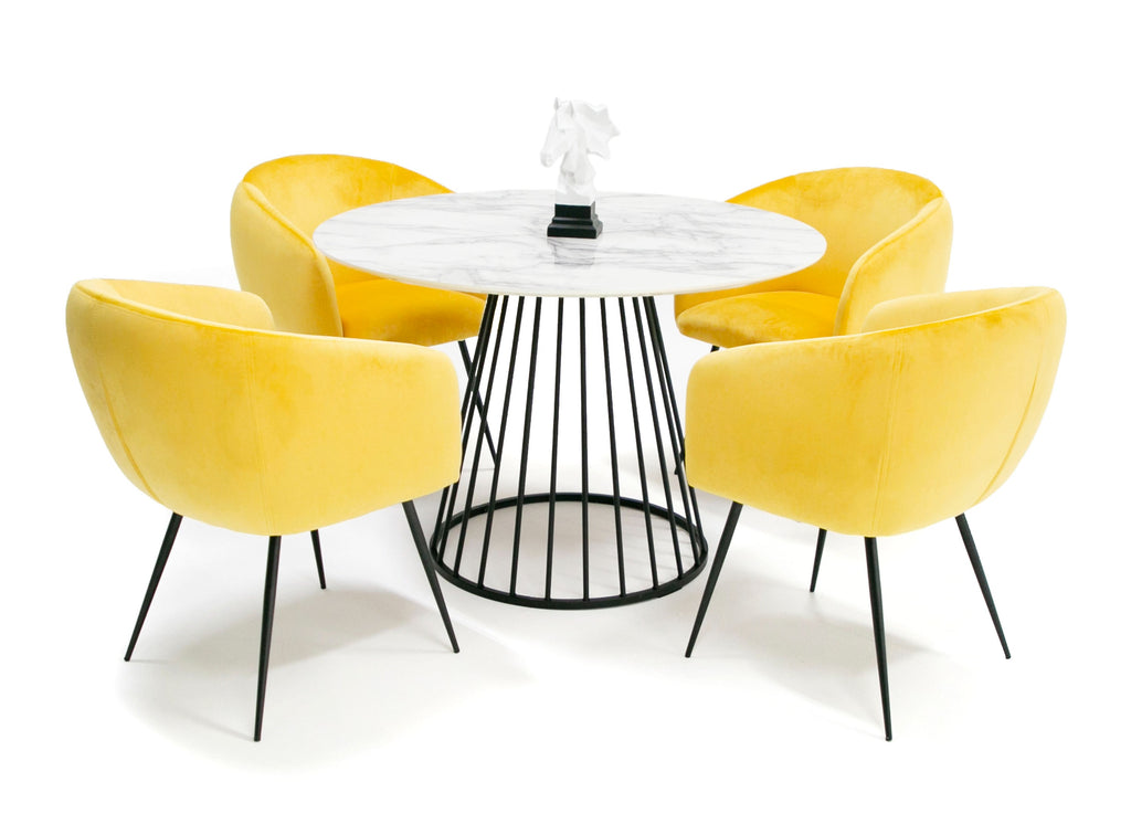 The Holly Round Dining Table is a statement making blend of mixed materials. A faux marble patterned top and a black pedestal base reflect a combination of simplicity and functionality. Perfect for tight spaces and dining nooks, Holly will seat four comfortably for game night or a quiet dinner at home.