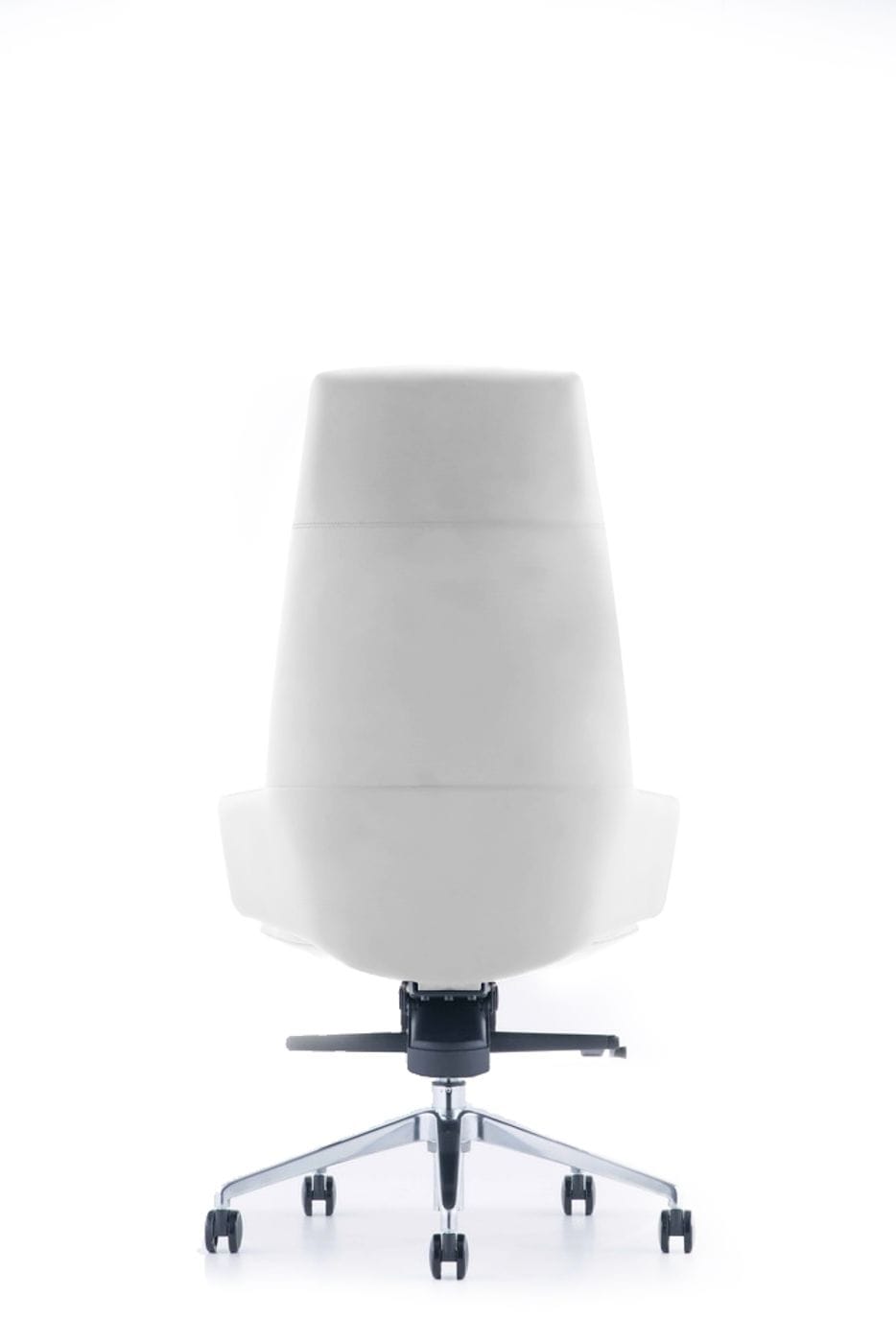 Upholstered in White Leatherette Executive Chair with High Back Knee Tilt Mechanism with 4 Position Lock Adjustable Back Angle with Lock Aluminum Base Adjustable Height Hooded Casters Compatible with Tile & Carpet Weight Capacity: 330 lbs Some Assembly Required