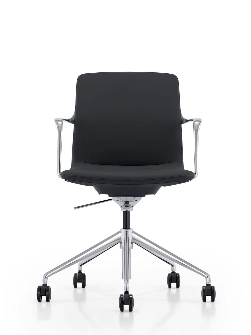 The Sundar is an extremely stylish office chair that has all the features that you would expect from a comfortable seating option. This black vegan leather office chair offers essential customization like an adjustable height, recline, and carpet rolling wheels. Sure to fit any style, the low back gives an executive feeling while the simple upholstery offers contemporary style.