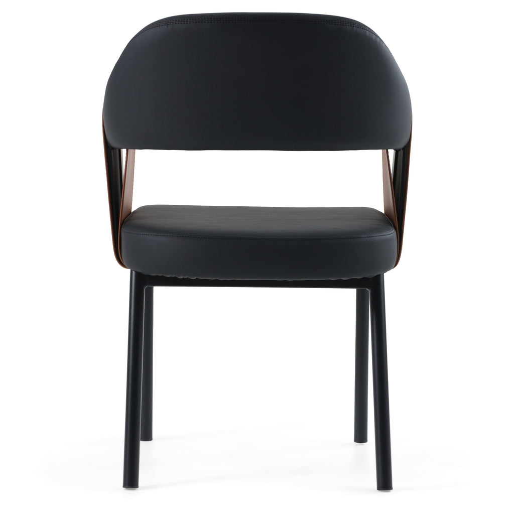 The Modrest Jensen Modern Dining Chair exudes sophistication with its seamless blend of black and camel vegan leather upholstery. Crafted to elevate any dining space, its sleek silhouette rests on a sturdy iron frame, offering both comfort and a striking visual contrast. The warm camel accents add a touch of mid-century flair, while the modern black finish ensures a timeless appeal. This chair invites a sense of luxury and style, transforming your dining area into a chic and refined retreat. Its subtle craftsmanship beckons you to indulge in an experience of elegance and comfort.