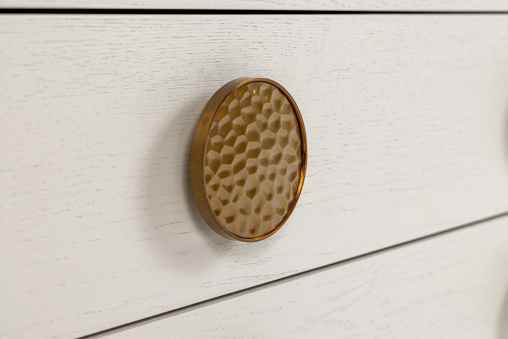 Cream White Ash Veneer Natural Wood Grain Color Stainless Steel Golden Metal Handles Three Drawers No Assembly Required