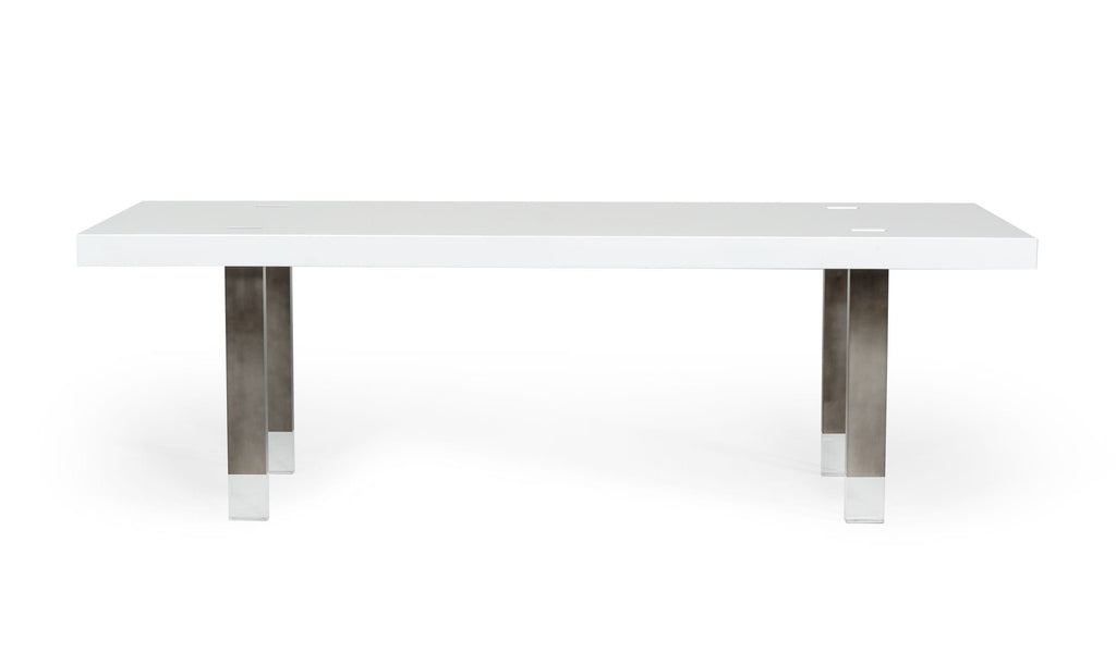 White High Gloss Stainless Steel Gun Metal Legs with Acrylic Tips Rectangular Shape Seats 8 Comfortably Some Assembly Required