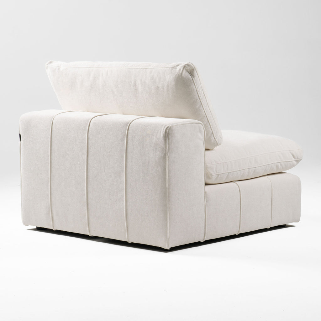 Armless Seat Modular Piece of Sectional Sofa 100% Polyester upholstery Color: Ivory Joyce G0501290T Solid Wood Frame Black plastic legs Pillow Seat & Back Removable Cushions and Covers Weight Capacity: 300 Lbs. No Assembly Required