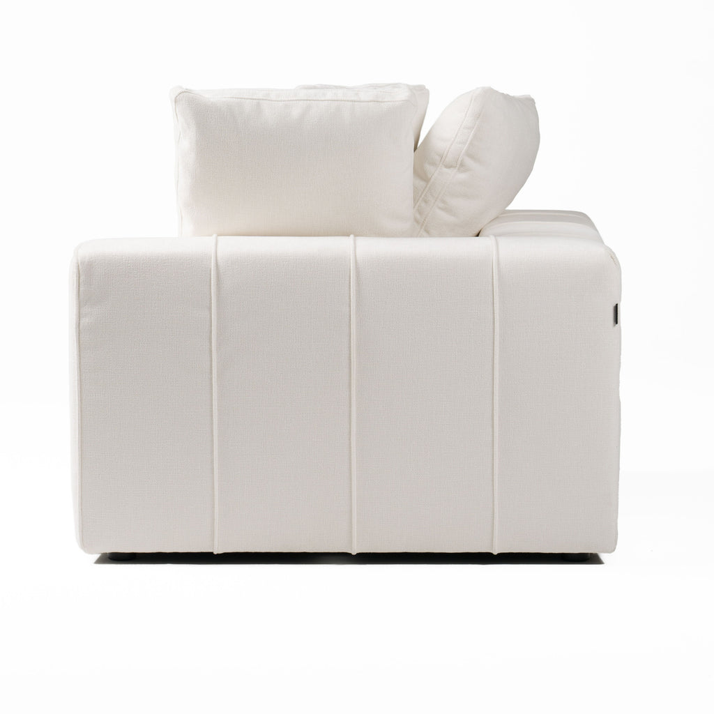 Corner Seat Modular Piece of Sectional Sofa 100% Polyester upholstery Color: Ivory Joyce G0501290T Solid Wood Frame Black plastic legs Pillow Seat & Back Removable Cusions and Covers Weight Capacity: 300 Lbs. No Assembly Required