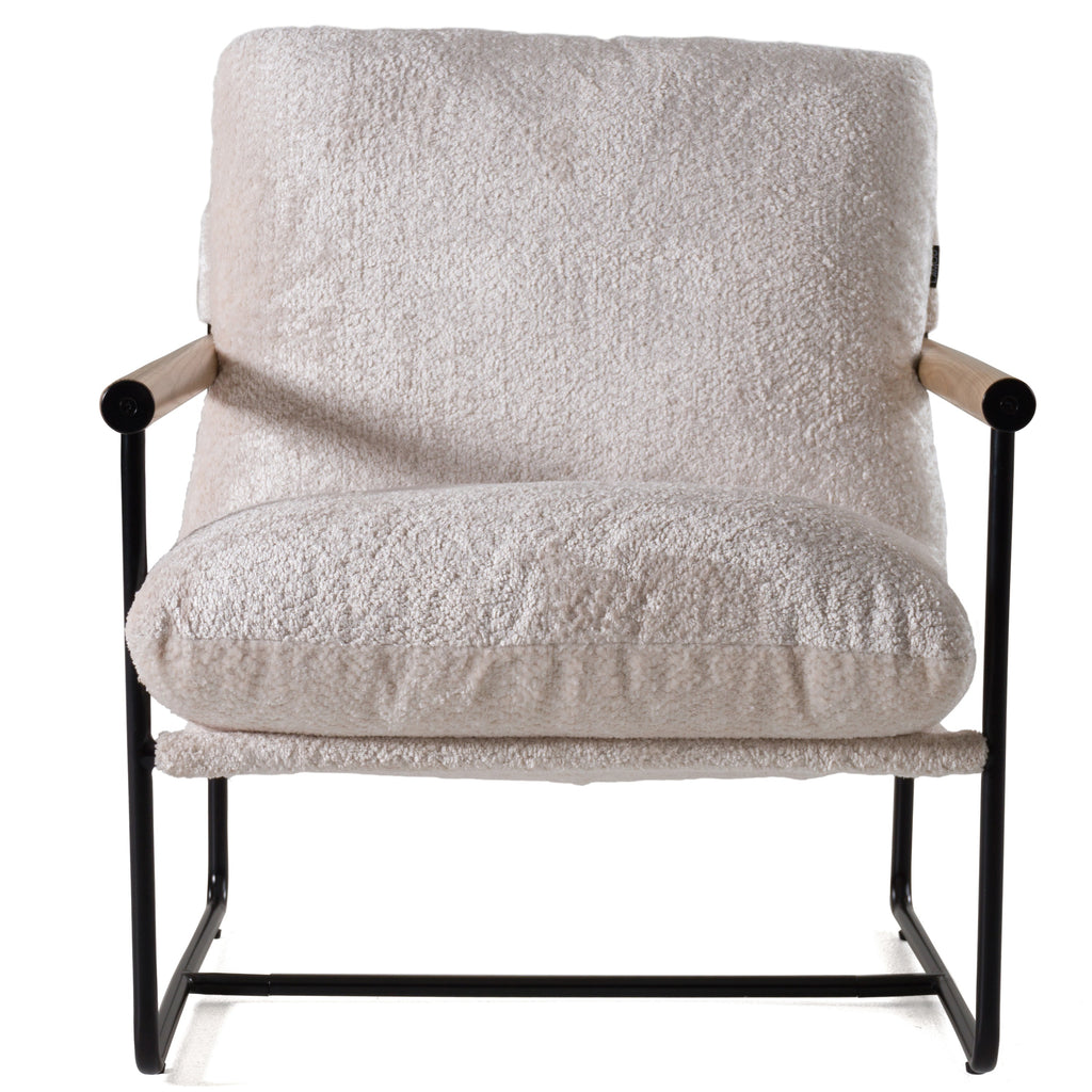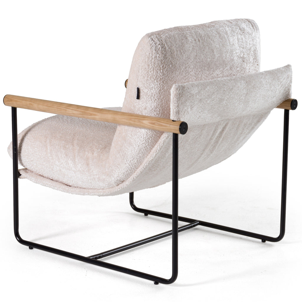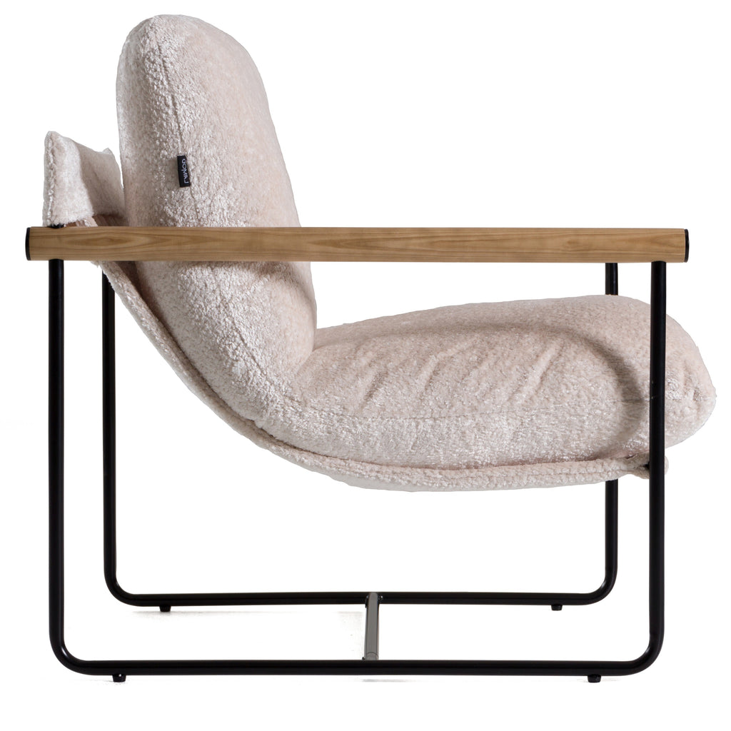 The Modrest Moorcroft Modern Beige Fabric Accent Chair effortlessly combines mid-century modern elegance with contemporary comfort. Wrapped in soft, beige fabric, its sleek silhouette is enhanced by minimalist black metal legs and warm wood armrests, creating a perfect harmony between industrial and natural elements. The generously cushioned seat and back offer a cozy retreat, while its airy design adds a touch of sophistication to any living space. Ideal for those who appreciate timeless design and subtle luxury, the Moorcroft chair brings both style and tranquility to your modern home.