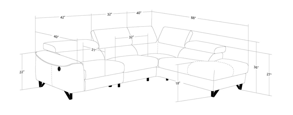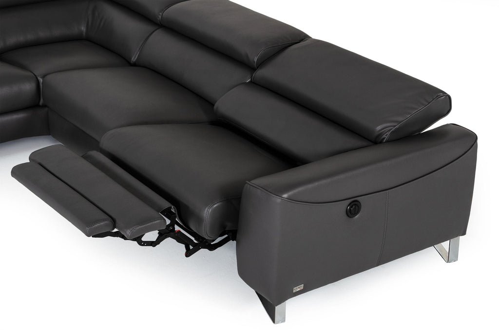 The Versa sectional is the right amount of elegance and comfort. With a right-facing recliner and adjustable headrests, this upholstered dark grey eco leather sectional is perfect for the whole family to relax in style.