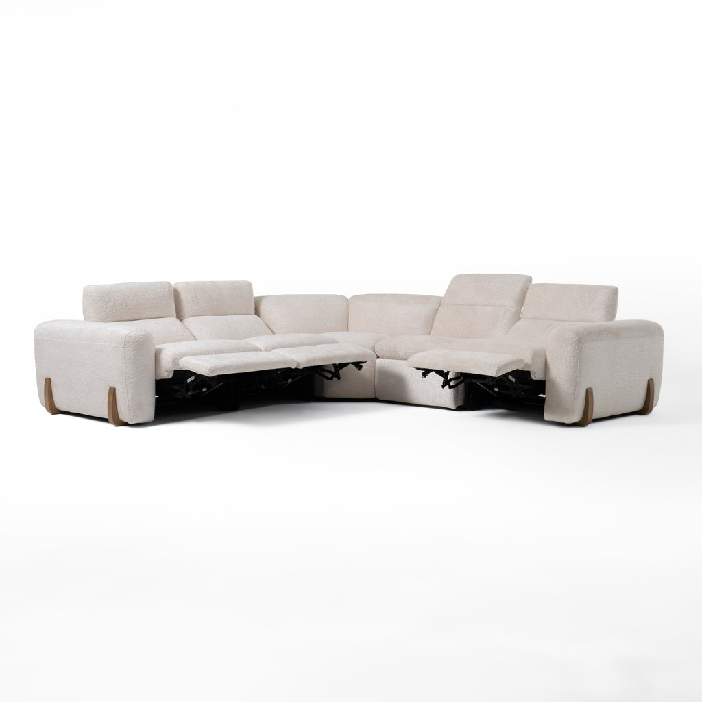 The Conrad Sectional sofa is a modern sectional sofa sure to take center stage in your living space! This L-shaped sectional features Utopia sand fabric upholstery, adjustable headrests and lumbar support, all completed with an elegant tight back. On either side, a pair of power motion recliners provide great places to unwind and offer customizable comfort. The Conrad is a fantastic sectional for adding modern charm, comfort and convenience to your living space.
