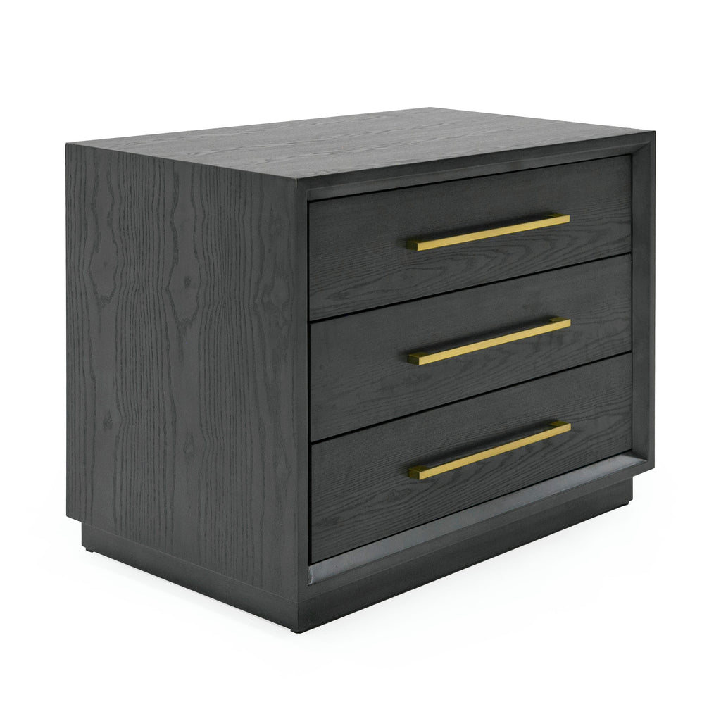 Combination of Solid Wood and MDF in Wash Grey Finish 74437 Gold tone handles 3 Drawers No assembly