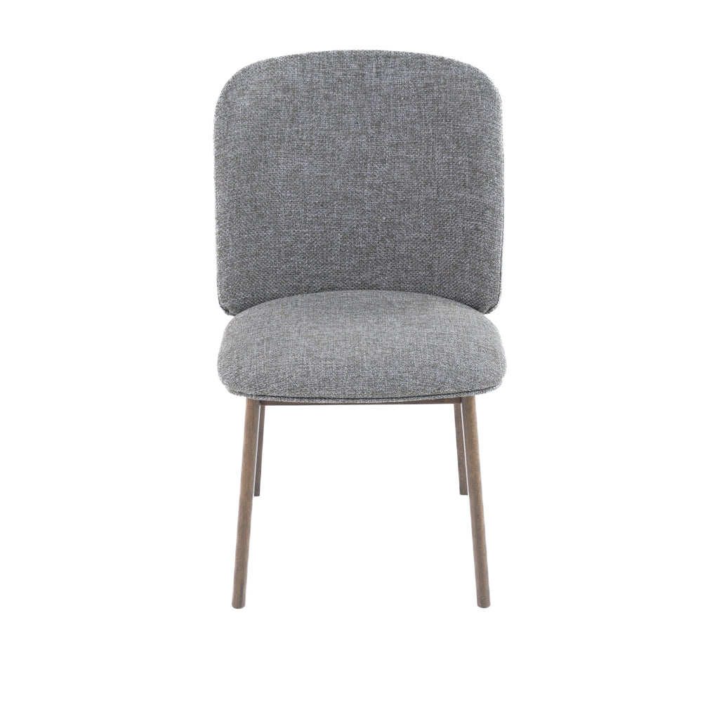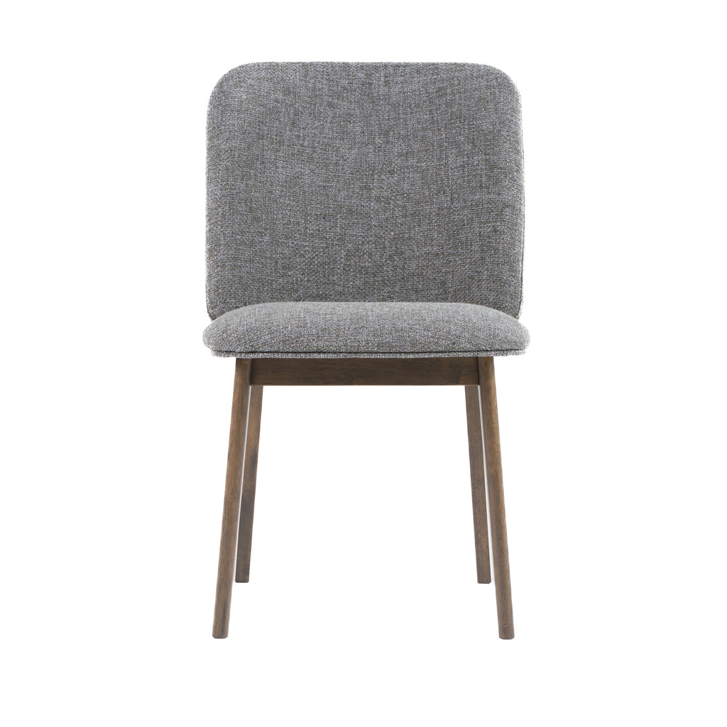 The Modrest Costello - Mid-Century Modern Grey Fabric + Wenge Dining Chair (Set of 2) offers a stylish addition to any dining space. This set includes two upholstered side chairs, crafted with a blend of 77% polyester, 15% acrylic, and 8% cotton in a sophisticated grey and night wenge color palette. The chairs are constructed from manufactured wood and solid rubberwood, providing both durability and a weight capacity of 220 lbs. Minimal assembly is required, and maintenance is simple with a dry soft cloth for cleaning.