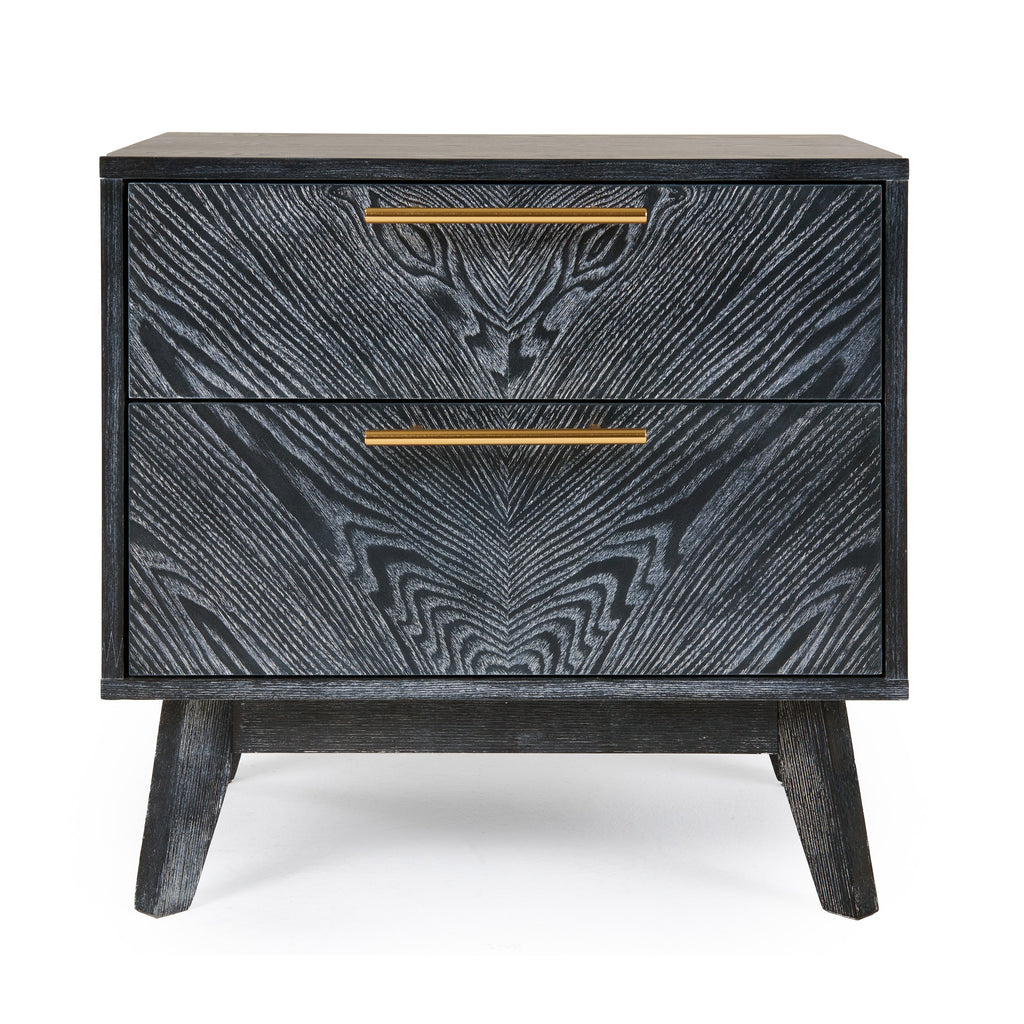 Ash Veneer Finish with Crown Cut Pattern Solid Rubberwood Legs 2 Drawers Gold Metal Drawer Handles Some Assembly Required Drawer Weight Capacity: 72.75 lbs
