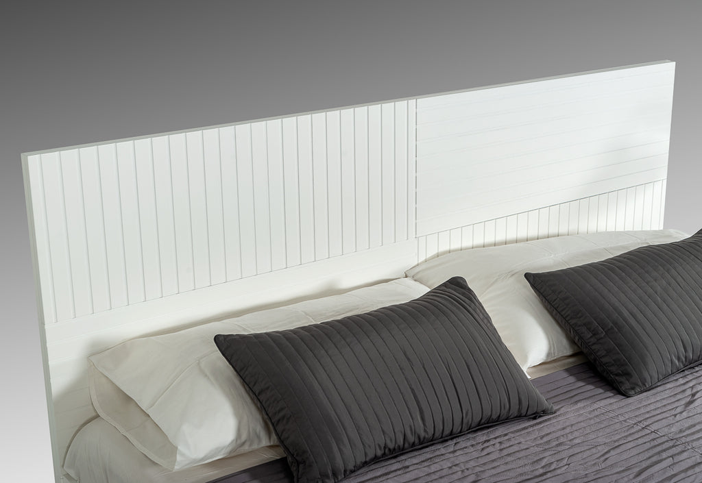 Oozing with style is the Nova Domus Valencia Contemporary White Bed in a sleek white matte finish. Featuring a medium-height headboard with vertical and horizontal ridges on its front, this contemporary bed comes with recessed slats for the mattress. This design encourages the mattress to breathe that helps prevent the growth of molds. Angular black metal legs provide durable support to this contemporary white bed.