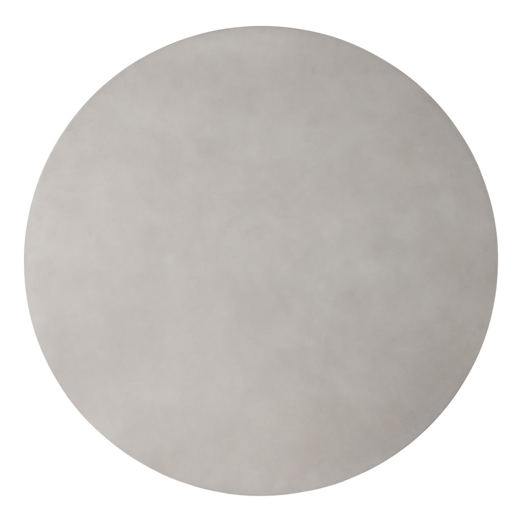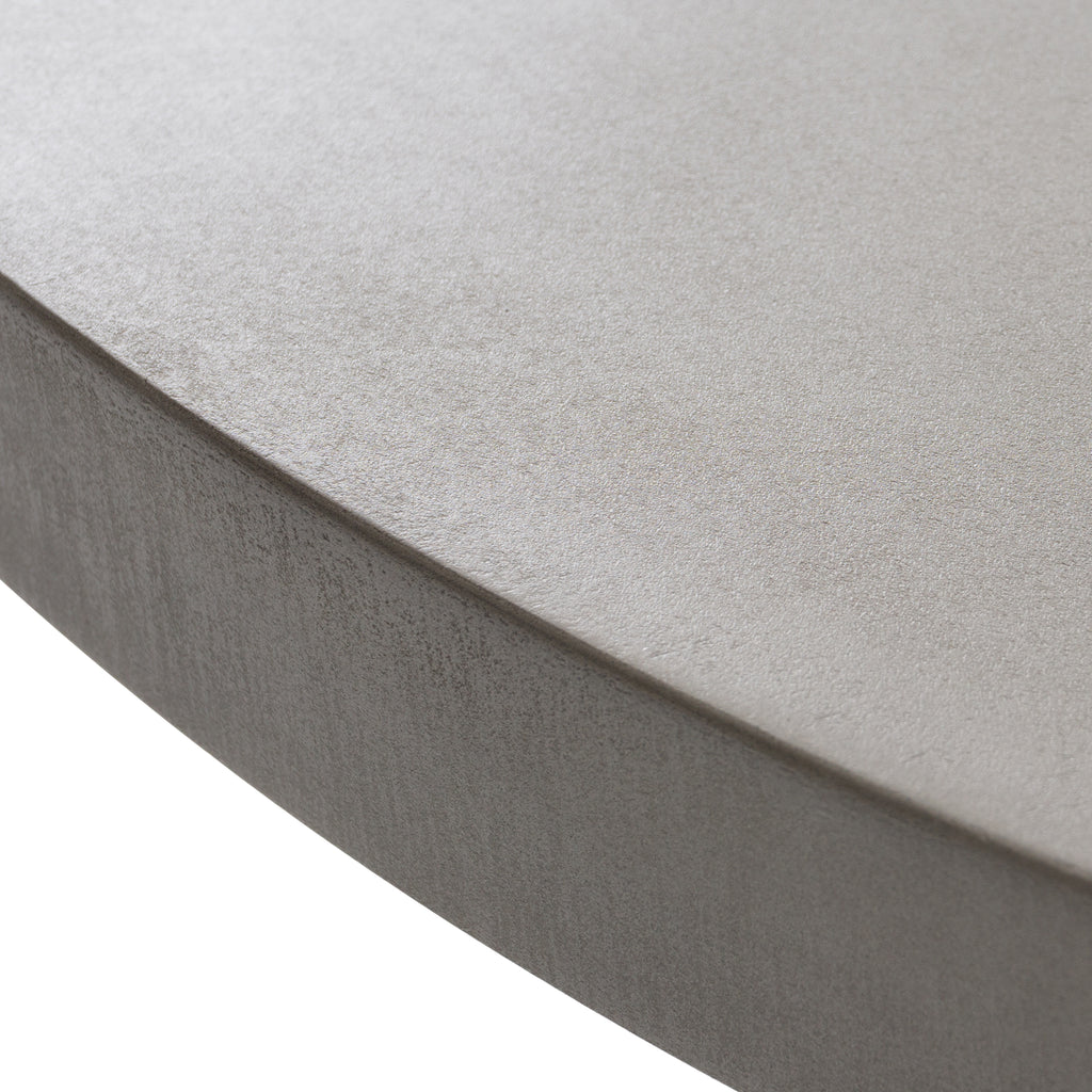 Round Dining Table Top + Base Material: Wood/Manufactured Wood Wood Species: Poplar Top Color: Grey Faux Concrete Laminate Base Color: Light Walnut Veneer Seats Up to 6 Table Pad Included Table Mechanism: Fixed Table Single Pedestal Base Product Care: Wipe clean with a dry cloth. Do NOT use strong liquid cleaners Full Assembly Required