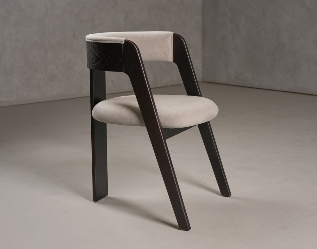 Introducing the Modrest Washington Dining Chair set, an elegant fusion of modern design and comfort. These chairs feature a sleek silhouette with a soft, upholstered grey fabric seat and backrest, framed by rich ebony oak legs that provide sturdy support. The rounded back enhances both style and comfort, making them perfect for contemporary dining spaces. Their minimalist aesthetic pairs beautifully with a variety of tables, while the neutral color offers versatility in decor. Perfect for elevating any dining experience.