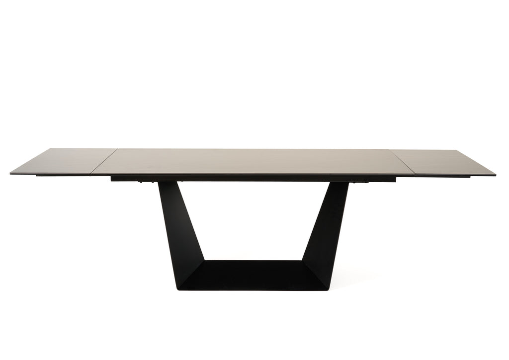 The Modrest Baldwin is a striking modern dining table featuring a sleek black ceramic top with exquisite golden veining, set atop a sturdy black metal base. Its contemporary design combines elegance and functionality, with an extendable feature that allows for accommodating gatherings of various sizes. The table's clean lines and bold shapes create a sophisticated aesthetic that can enhance any dining space. It comfortably accommodates up to 6-10 people, making it perfect for both intimate dinners and lively entertaining.