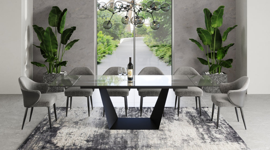 Bring classic modern style and elegance to your dining room with the addition of the Baldwin Modern Glass Extendable dining room table. It features a classic modern design element: a glass table top. This particular glass table top is made of 10mm-thick clear tempered glass, balancing style with functionality. What is even better is that this table can be extended to fit any unexpected dinner guests who show up with ease, extending up to three additional feet. The tabletop is supported by a stunning modern table base that is made out of metal and coated in a warm brown powder finish.