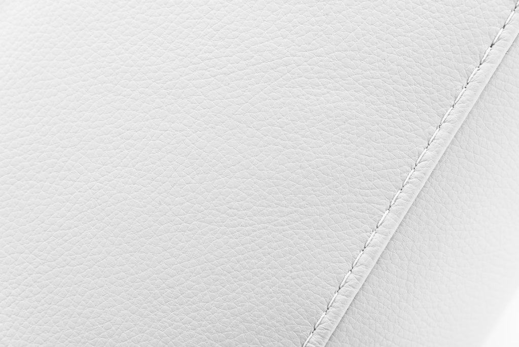 Upholstered In Full Leather Color: White Cat H9500 Right Facing Chaise Drop arm design Veneer Side Tray Adjustable Headrests Stainless Steel Legs Handmade In Italy Available In Other Upholstery By Special Order (10-16 Weeks)