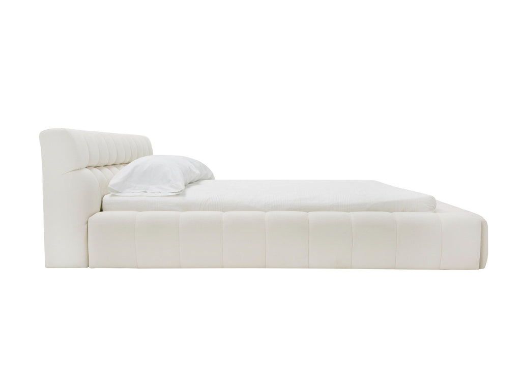 For modern and fresh bedroom look, the Tyree Bed is wrapped in a stylish and clean cream-colored fabric with a fully upholstered tufted headboard and bedframe. With the option to install supportive slats, the Tyree can support an automatic/adjustable base and/or any mattress of your choosing.