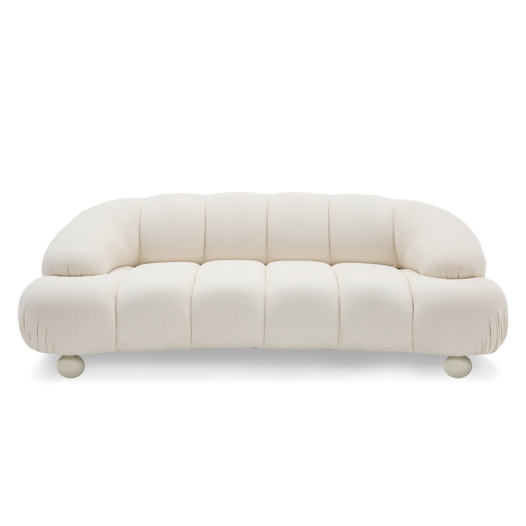 The Duran Loveseat is a modern and elegant piece, fully upholstered in cozy white fabric with rounded wooden legs. Its rounded cushions, sloped arms and curved edges create both a modern and comfortable seating arrangement for your living and family spaces. The Duran collection also includes a matching Sofa and Accent Chair.