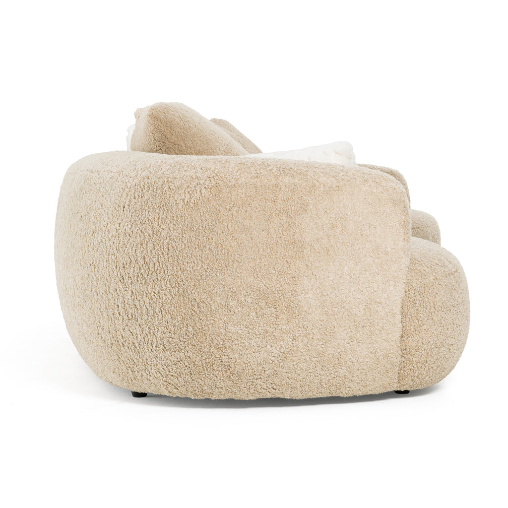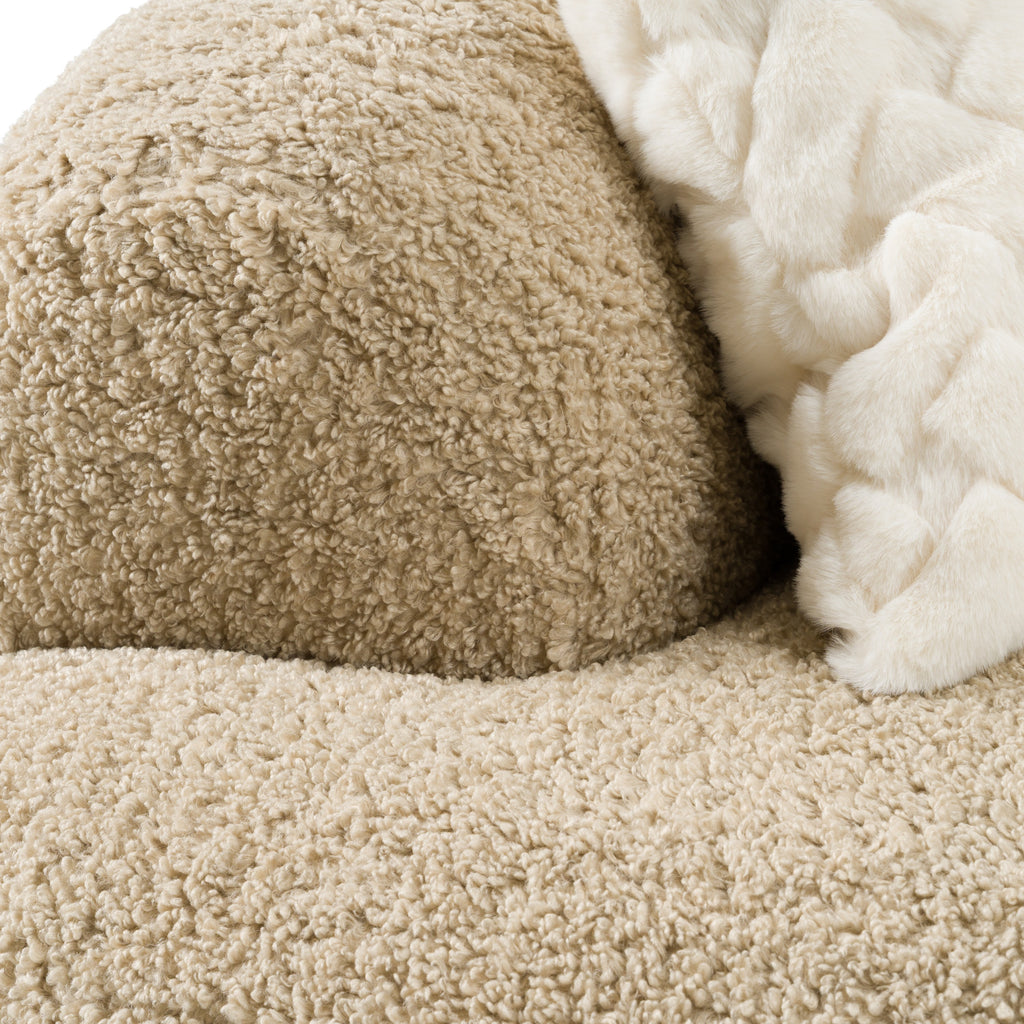 The Curved Symmetrical Sectional Sofa is a harmonious blend of modern design and inviting comfort, crafted to transform any living space into a haven of style. Wrapped in a soft, textured fabric in a sophisticated tan hue, its sculptural curves and plush cushioning create an ambiance of understated elegance. The symmetrical design and accompanying toss pillows enhance its versatility, making it a perfect centerpiece for both intimate gatherings and relaxed lounging. A true reflection of refined craftsmanship, this sectional brings warmth, luxury, and timeless charm to any contemporary home.