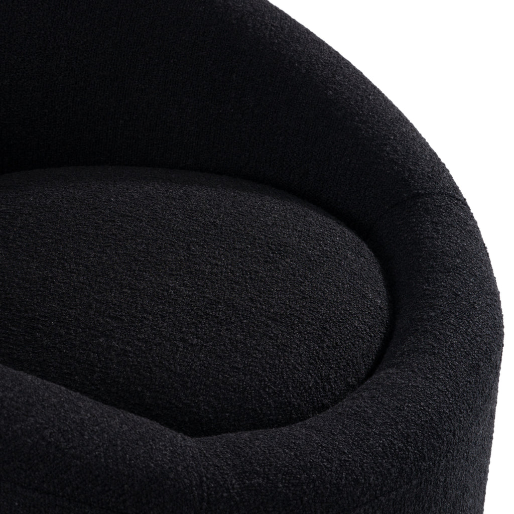 The Modrest Frontier Glam Black Fabric Accent Chair is a bold statement of modern elegance, effortlessly merging luxury and sleek design. Wrapped in rich, deep black fabric, its sculptural form and sophisticated slope arms exude a chic presence. Perfectly cushioned for comfort, this accent piece invites leisurely lounging while serving as a refined focal point in any contemporary living space. It embodies the allure of upscale living, imbuing your home with an air of chic sophistication and timeless style.