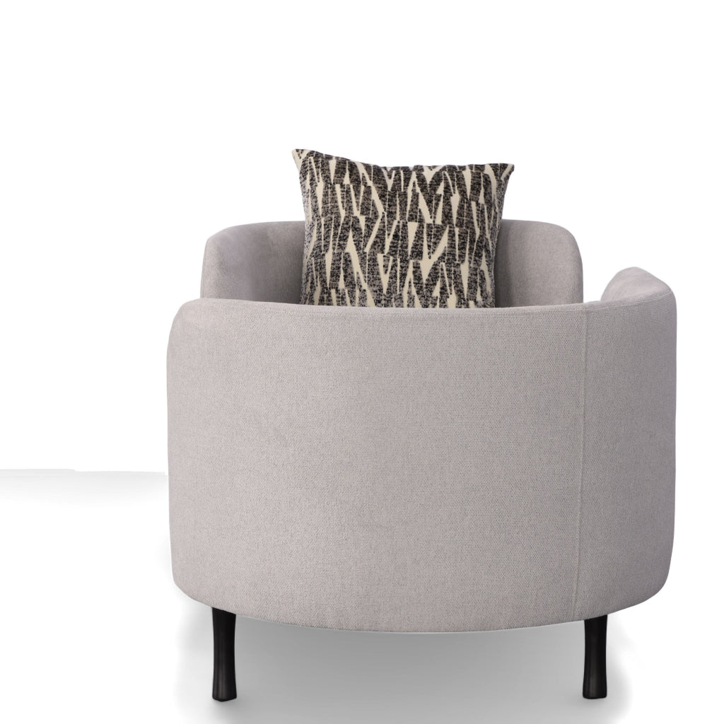 The Jamie Chaise is a unique conversation piece for and sitting room. The dual-curved backs are perfect for a good reading spot. The two included toss pillows add a contemporary flair while the silhouette is all modern.