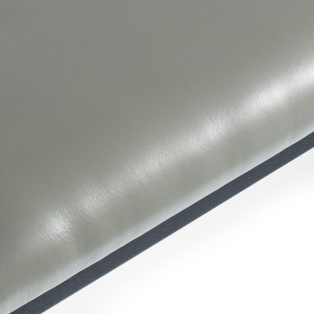 Rounded Black Metal Bar Stool Grey Faux Leather Seat Cushion Foam Fill Seat Construction Round Upholstered Arm/Seat Back Tripod Base Weight Capacity: 200 Lbs. Product Care: Wipe clean with a dry cloth. Do NOT use strong liquid cleaners No Assembly Required